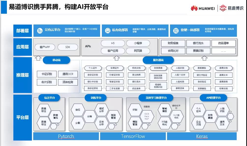 從 2020 年至今,易道博識與華為建立了密切的合作關系。憑借易道博識對深度學習和OCR識別技術的持續(xù)研發(fā)和推廣,不僅與華為在產(chǎn)品上達成兼容,還基于各自領域的技術與資源優(yōu)勢,在解決方案層上積極探索實踐,從技術到產(chǎn)品再到解決方案,做到了技術共享、業(yè)務互補、區(qū)域共贏。