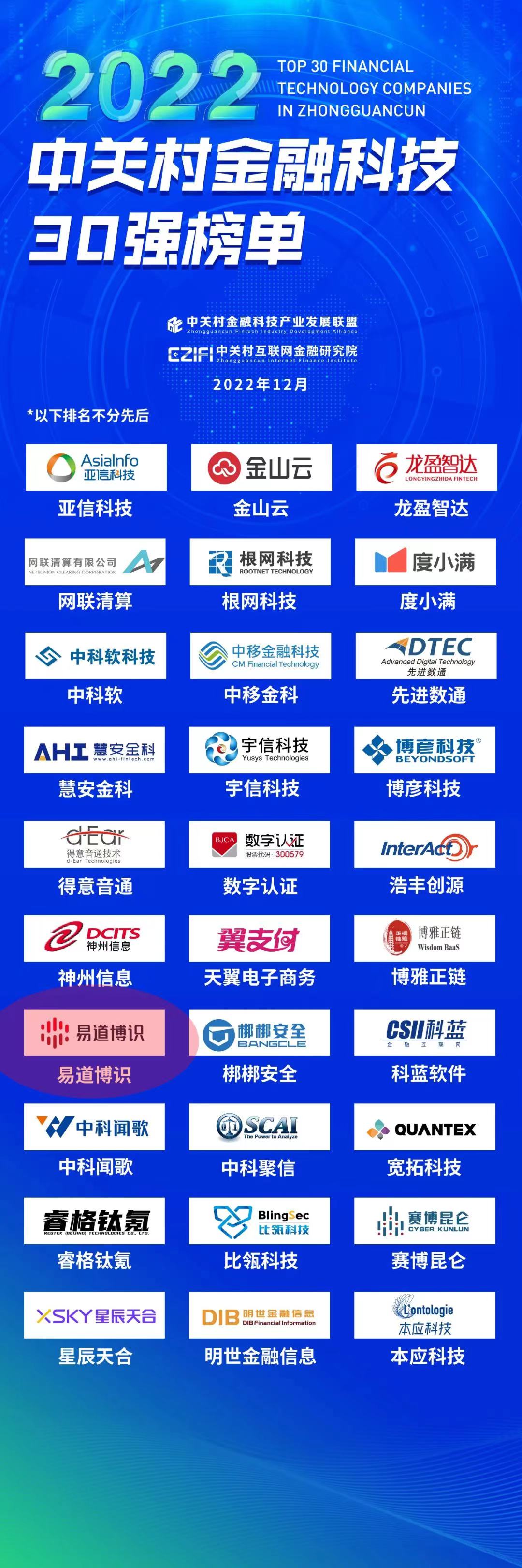 2022年12月13日-14日,由中關村金融科技產業發展聯盟、中關村互聯網金融研究院、中國互聯網金融三十人論壇共同主辦的“2023第十屆中關村金融科技論壇年會暨2022‘光大杯’中關村番鈦客金融科技國際創新大賽頒獎典禮”?在“云端”盛大舉行。本次論壇采用全新線上方式,匯聚行業學者精英,聚焦金融科技前沿熱點問題及發展趨勢,并見證了由中關村互聯網金融研究院和中關村金融科技產業發展聯盟共同主辦的《2022中關村金融科技30強榜單》(簡稱“2022年30強榜單”)的發布。