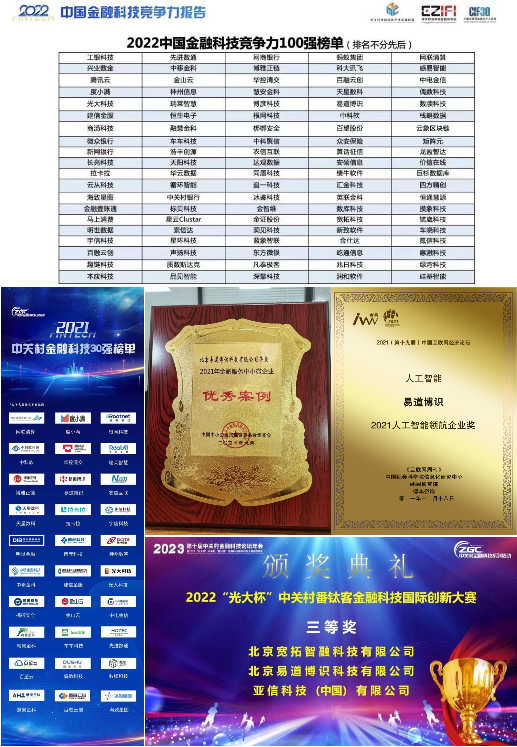 在此期間,易道博識不僅連續數年獲得中關村金融科技30強、中國金融科技競爭力100強、中關村論壇國際技術交易大會-百項新技術新產品、中國互聯網經濟論壇-人工智能領航企業金i獎等,更多次入圍各專業領域聯盟、協會、媒體評選的人工智能、金融科技等相關榜單、獎項和優秀案例等。