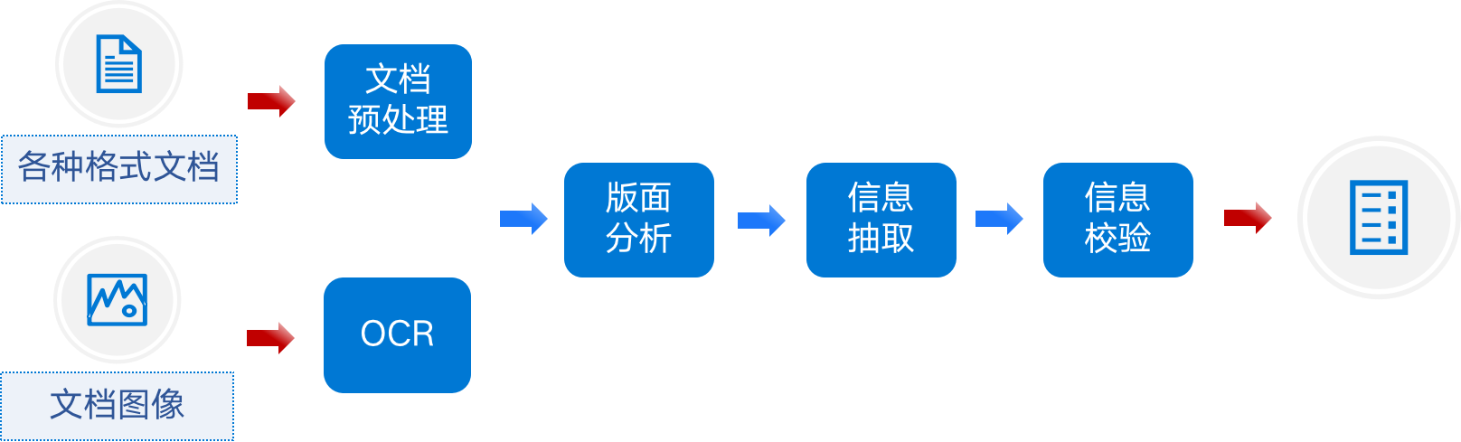 基于版面和目錄分析的結(jié)果,結(jié)合文檔協(xié)議解析或OCR的結(jié)果,利用自然語言處理等技術(shù),進行文檔關鍵信息抽取。