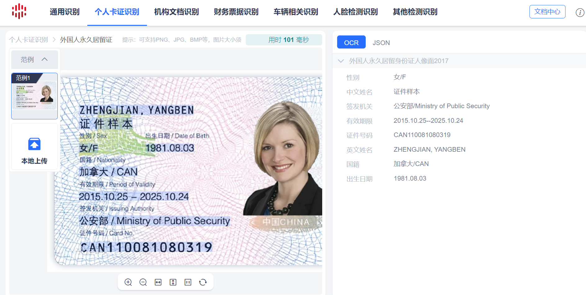 新版“五星卡”識別,易道博識新版外國人永久居留身份證識別解決方案