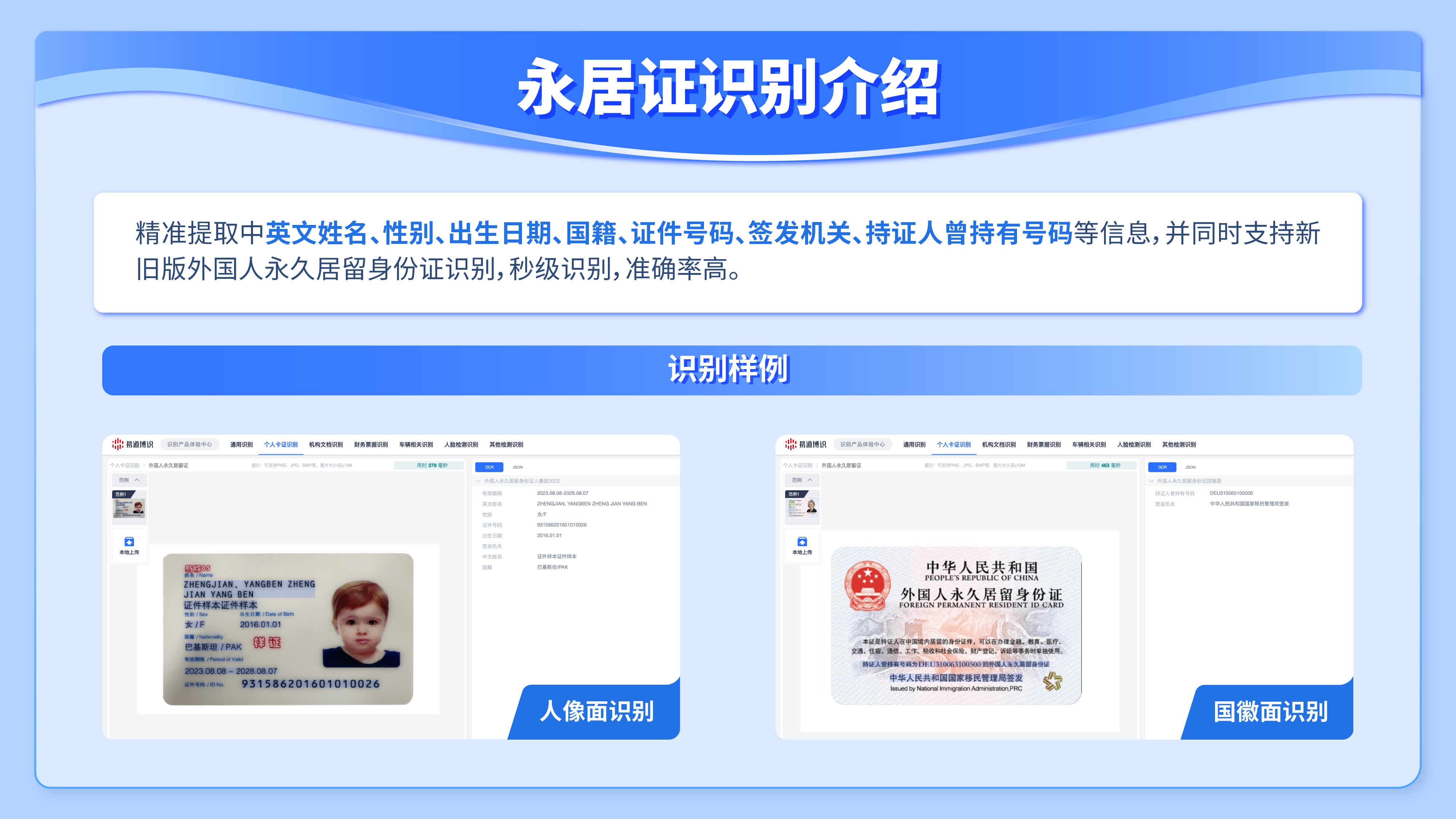 隨著國家移民管理局發布新版外國人永久居留身份證(通常稱為“五星卡”),市場對高效、精準的外國人永久居留證識別技術的需求顯著上升。對此,易道博識快速響應市場變化,推出了專門針對這些新版證件的識別解決方案,助力各行各業實現高效管理。
