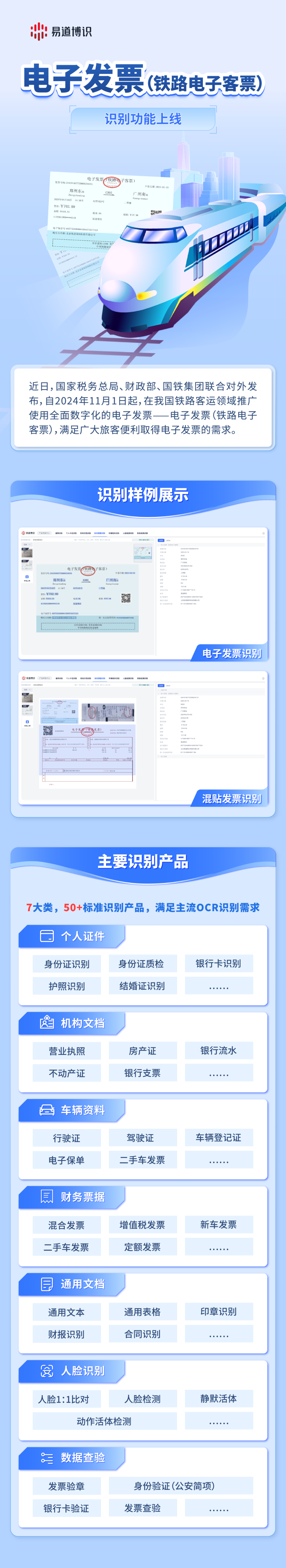 為了幫助財務人員提高發票報銷的效率,推薦使用易道博識的"易識"產品。基于深度學習的OCR ,可以快速、準確地識別電子發票,還支持發票驗真。