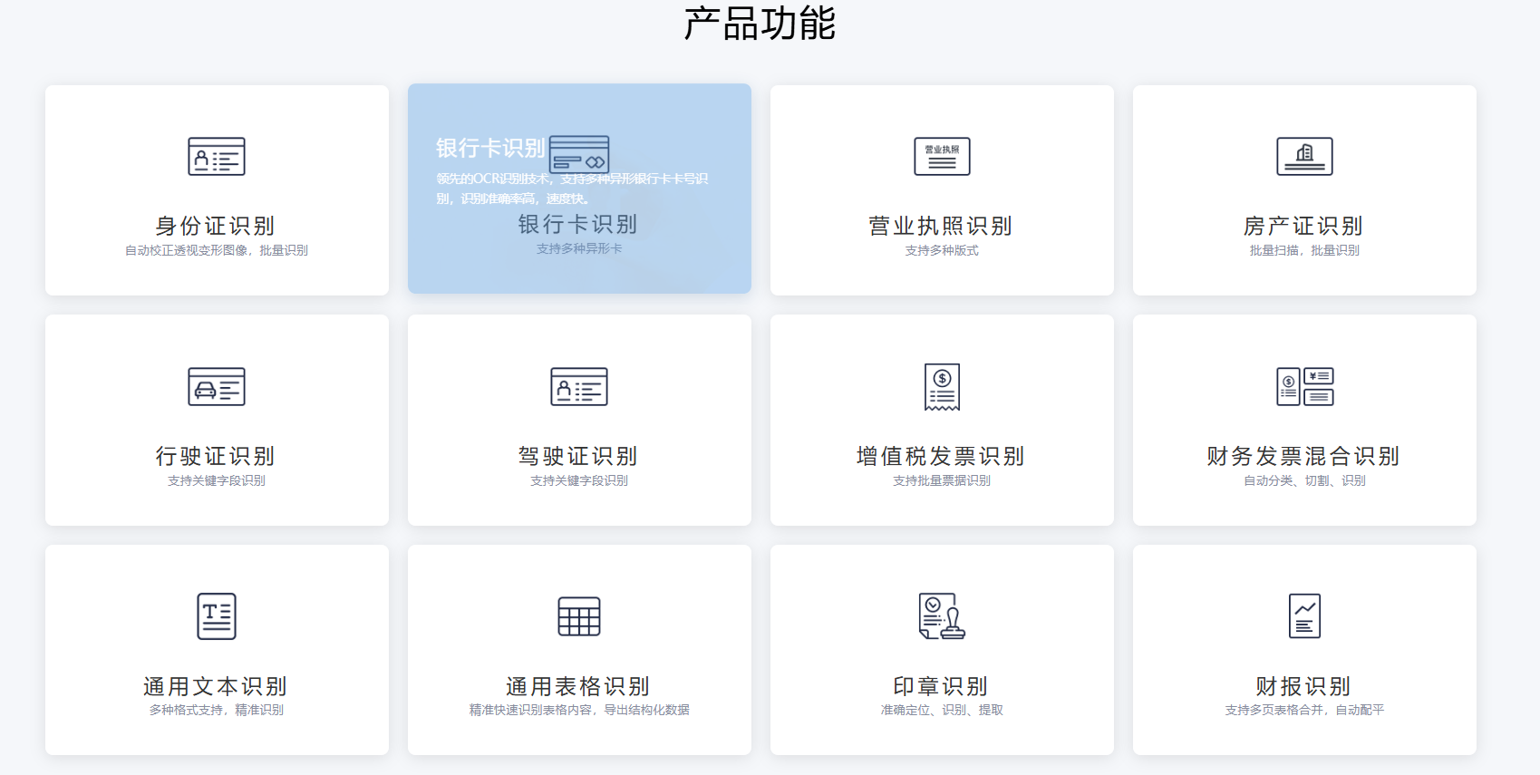 “易識”不僅提供營業執照OCR識別功能,還支持身份證、護照、駕照等多種證件類型的自動識別。支持7大類,50多種識別場景,滿足企業主流OCR識別需求。