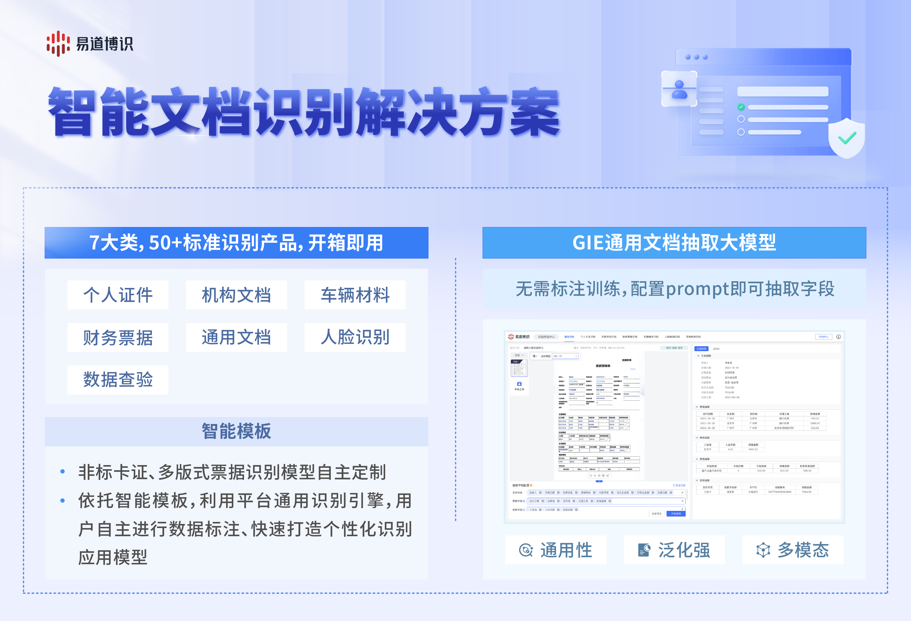 易道博識深耕OCR多年,推出的財(cái)務(wù)發(fā)票混合識別方案得到了市場的廣泛認(rèn)可。該方案基于深度學(xué)習(xí)的OCR算法,在發(fā)票識別準(zhǔn)確性方面,系統(tǒng)對各類票據(jù)的平均識別率超過99.5%,系統(tǒng)僅需300毫秒即可完成單次識別,這種高效的處理能力極大地提升了企業(yè)的工作效率。