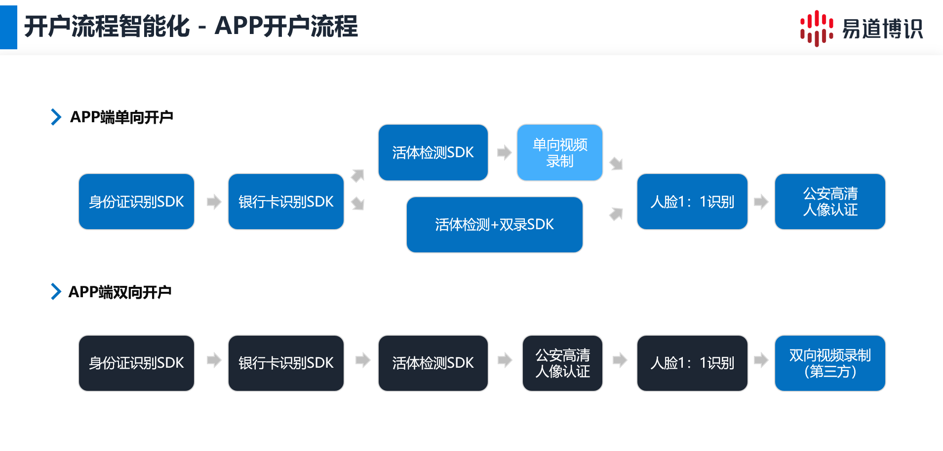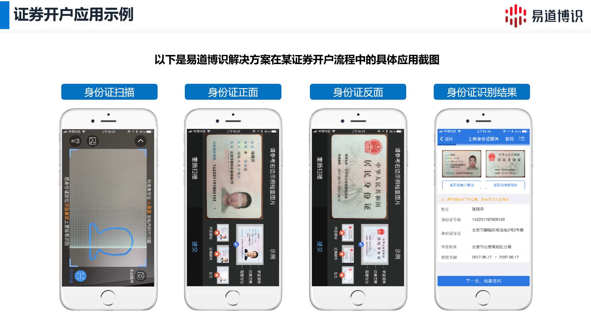 在線證券開戶已經成為證券行業發展的必然趨勢。而易道博識的智能化開戶解決方案,融合了身份證識別技術與活體檢測技術,已經為越來越多的證券行業開戶流程提供了強有力的安全保障和技術支撐,助力其實現更加穩健、高效的數字化轉型。