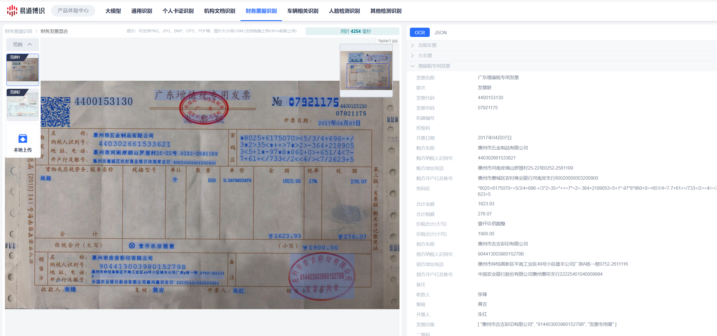 考察清單: 一個強大的API應具備“全票種”識別能力。請核對服務商是否支持以下所有類型: