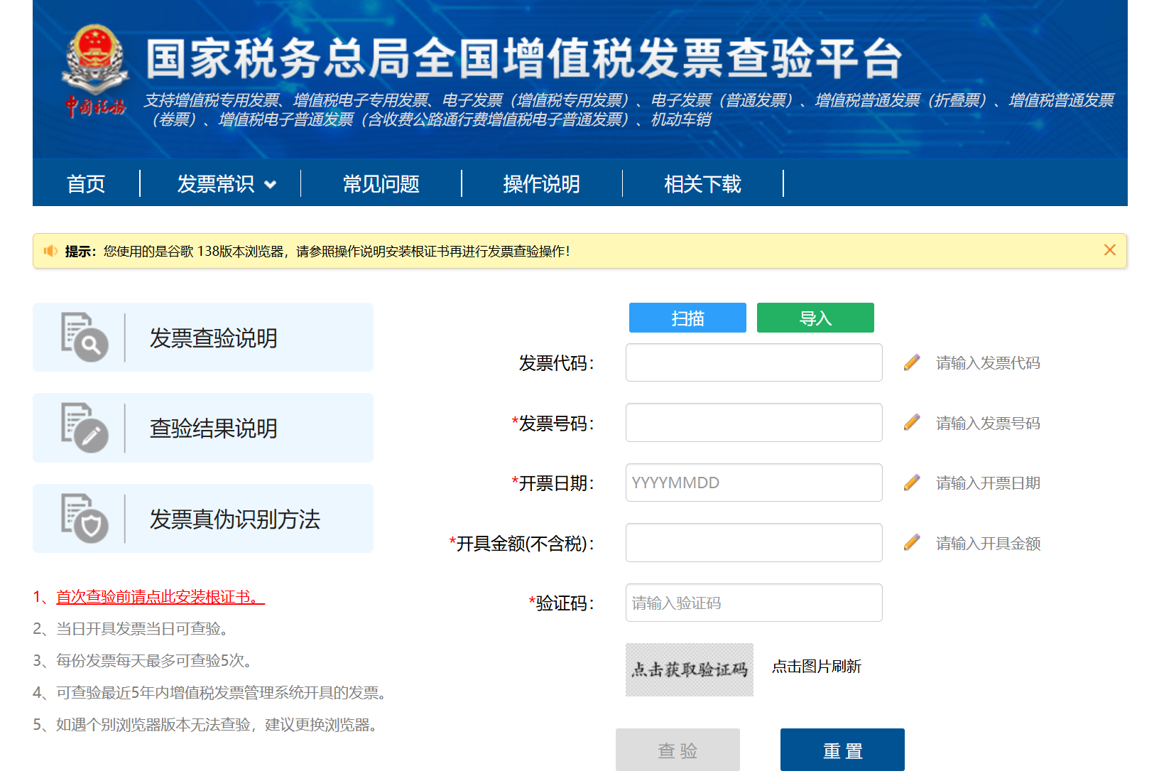 這是驗證所有增值稅發票(包括紙質專票、普票和電子發票)的最核心步驟,適合個人或處理少量發票的場景。