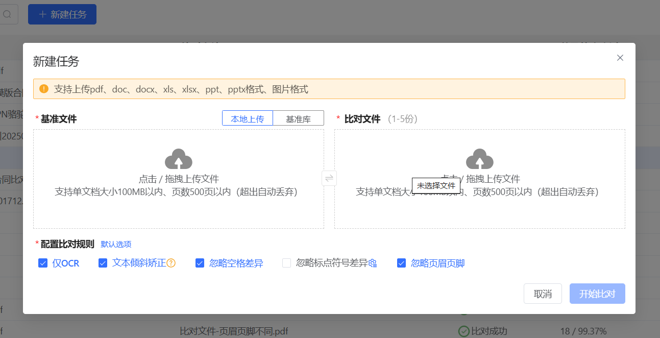 ●打破格式壁壘,實現萬物皆可比對 無論是標準的Word、PDF文檔,還是棘手的圖片、掃描件,系統都能輕松應對。其強大的OCR(光學字符識別)和版面分析能力,能將非結構化的圖像內容精準轉化為可供比對的文本信息,實現了真正的全格式兼容。