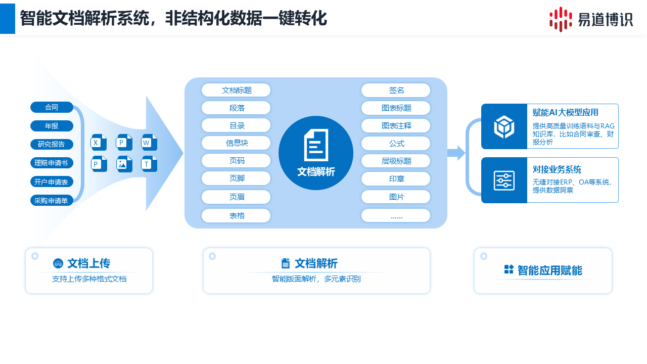 文檔解析的核心作用,就是將PDF、掃描件、圖片等非結(jié)構(gòu)化文檔,高效地轉(zhuǎn)化為機(jī)器可讀的結(jié)構(gòu)化數(shù)據(jù)(如Markdown、JSON),為下游業(yè)務(wù)系統(tǒng)賦能。