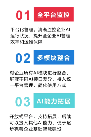 之前往往需要每個(gè)企業(yè)內(nèi)部搞一番大工程,需要專業(yè)的技術(shù)人才不說,還耗時(shí)耗力。甚至很多企業(yè)目前在使用的多個(gè)AI模塊還是處在一盤散沙的狀態(tài),無法進(jìn)行統(tǒng)一管理。