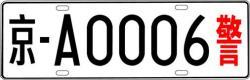 此外還有一些特殊車牌。如警車號牌,白底黑字(“警”字為紅字)黑框線。漢字與字母之間前點后杠,用于汽車類警車。