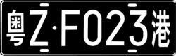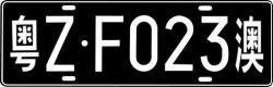 港澳地區入出內地的汽車使用港澳入出境車號牌,黑底白字白框線,白“港”、“澳”字,白框線。