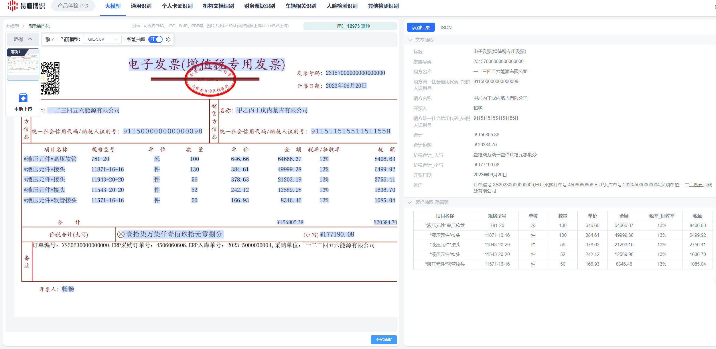 與原生大模型不同,經過二次訓練的模型支持輸出每個識別字段在原始圖像中的精確坐標。這一功能解決了結果無法溯源的問題,滿足了業務核驗與合規審計的需求。